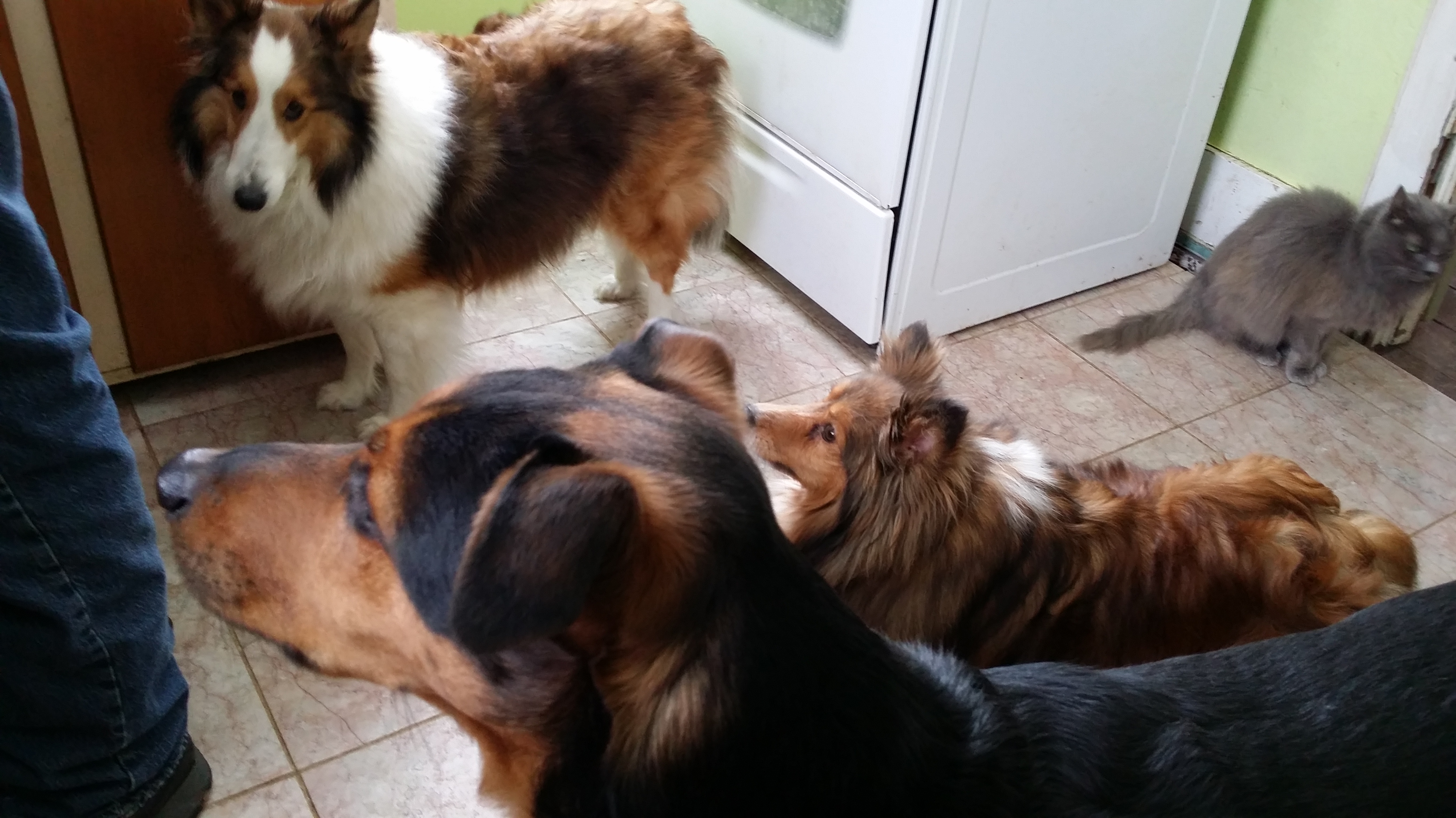 This is our current foster sheltie named Blitz. He came into our rescue as an owner turn-in. He is only 5 years old and had been with his owners since puppy hood. Usually it doesn’t sit well with me when someone turns over their dog. Sometimes there is a case where I understand and this was one such case. Blitz was intensely loved. I felt very bad for the poor lady that had to turn him in. It was very hard for her. The story is one that I have, sadly, heard too many times recently. It was an older woman and her husband had passed away so she had to sell her home to move closer to her children. Blitz was use to having many country acres to patrol and watch over. To be fair, the nice lady did take Blitz with her to her new condo and tried to make it work. But this winter has been so cold and icy. Blitz had already pulled her down three times and there is much more winter weather to go. The chance that the lady could have been badly hurt was just too great. But boy was he loved.
