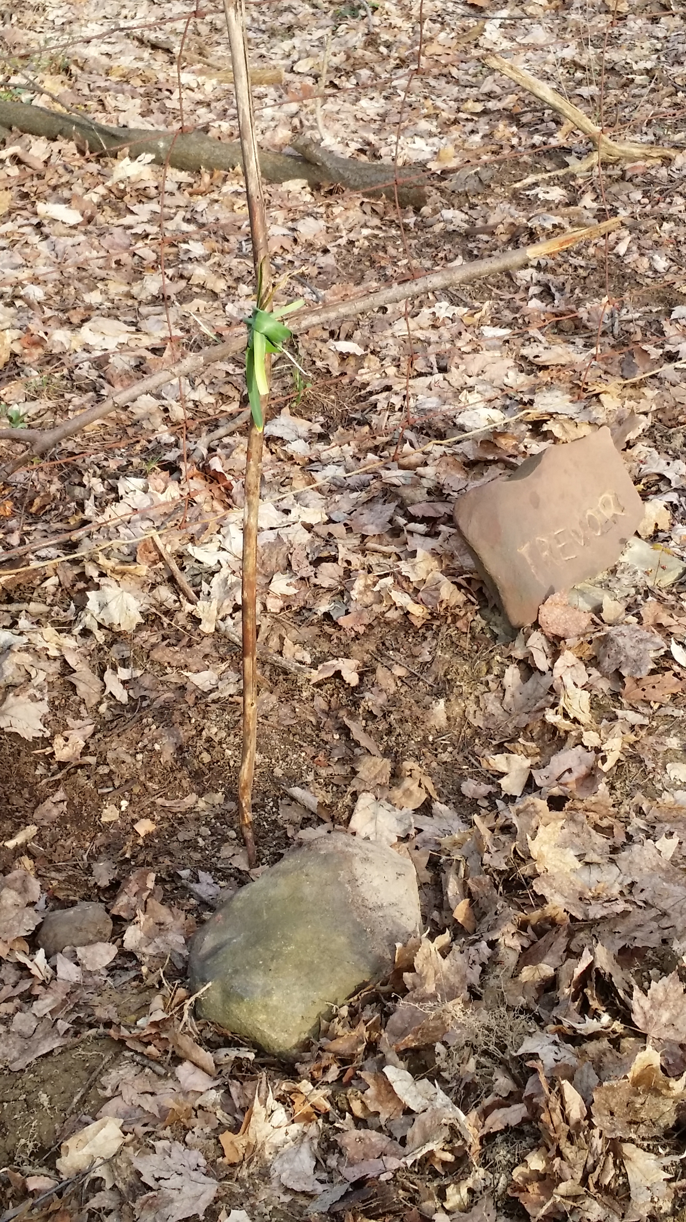 And what first got me out in the woods today. The ground was finally thawed out enough to bury my Romeo Kitten. His grave is marked with the cross and unmarked stone. Soon it will have his name engraved on it. Beside him is dear Trevor whose stone already bears his name.