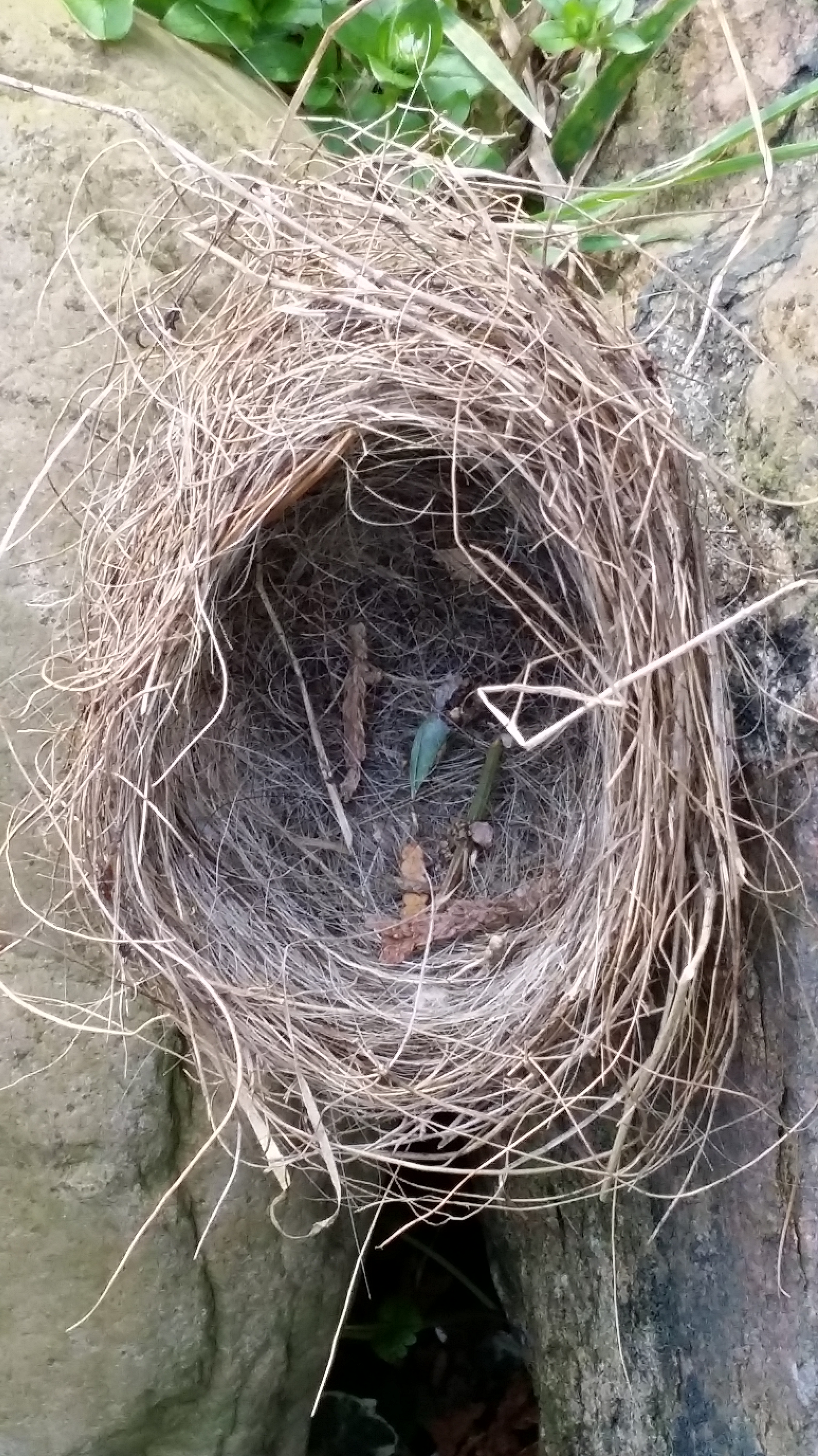 I stumbled upon this fallen nest. The high winds we have had must have knocked it down. It is early enough in the year that it is probably a nest from last year. Of course it has copious amounts of dog fur woven into it. How soft and warm for the hatchlings.