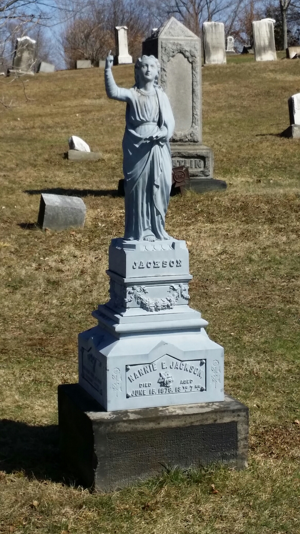 We like to walk dogs at a local cemetery. It is an old cemetery and some of the stones are beautiful pieces of art work. It is a rather large place too. It doesn’t seem to matter how many times we go there, I always see something that I never noticed before. I always learn something too. From the surnames on some of the stones, I learn how some of the streets and roads in the area were named. I notice that some first names seem unusual and have gone out of fashion. From seeing the different types of monuments you call tell what medium holds up the best and what was in fashion at the time. There is zinc, marble, and granite. Some are plain, others are ornate, big, small, with urns, human likenesses, floral carvings, or symbols.