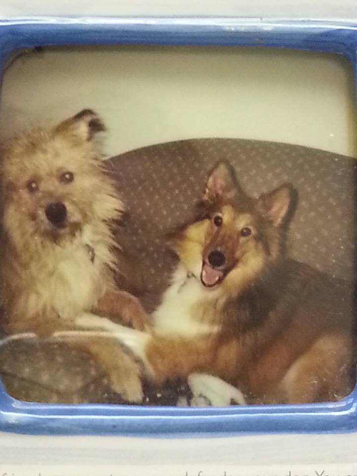 This was not always the case. In his earlier years I used to refer to him as the sheltie from hell. But he grew into his epitaph-A Good Dog. As a young dog he never stopped. He was in constant motion. He wore me down to the point that by late evening I had to crate him or leash him to the coffee table leg so I knew where he was. Otherwise he was chewing, taking things or finding some other way to get into trouble. And he just wore me out by that time of day. I tried to put him in the attached garage for a short time so that I could get some things done in the house, thinking he could still run around and get some exercise. He got some exercise all right. By starting to chew through the dry wall to get in the house and be closer to me. This resulted in my leashing him to the coffee table. He was inside but I knew where he was. The coffee table still bares his teeth marks and has a couple of missing corners but otherwise it did survive his younger days. He and his cohort, Dakota, got into their share of mayhem too. Dakota is my brother’s dog but we all lived together for a few years. Duncan and Dakota were very nearly the same age.
