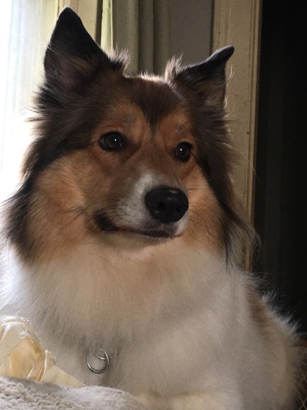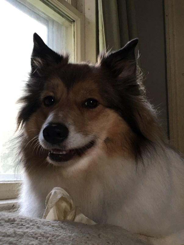 Then on to more therapy work! I recently met someone at work who’s parents live about a half mile down the road from me. The father is not able to get around like he once was and could really use a visit from a sheltie, I was told. Shelby and Nikki to the rescue! We walked down the road for a visit and now have even more friends.