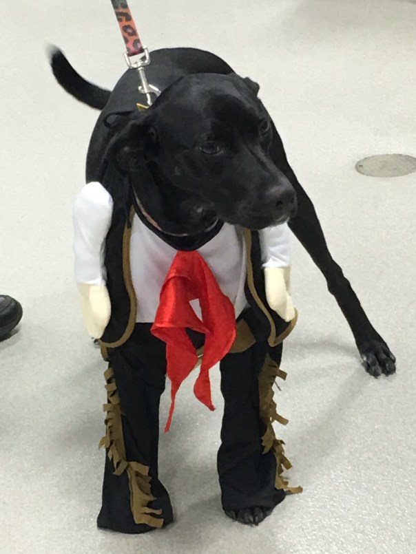And Greta, a possible Dane/Boxer mix, who came as a pirate.