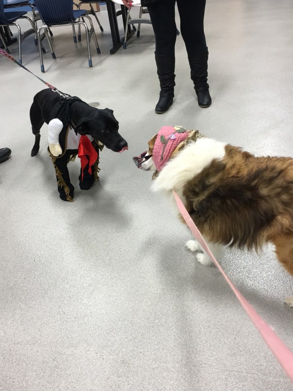 Last night was our final class so we briefly had our dogs don costumes. I’m not a big fan of putting costumes on dogs but the people we visit draw so much enjoyment from it. I think it is worth it to make our friends at the nursing home smile. I do tend to reserve this for our October visits to celebrate Halloween. For the final class, I wanted to teach how much laughter this can bring, and what a great thing it is to share with others.