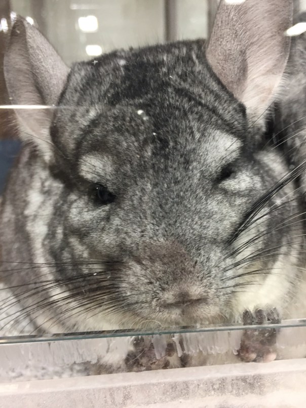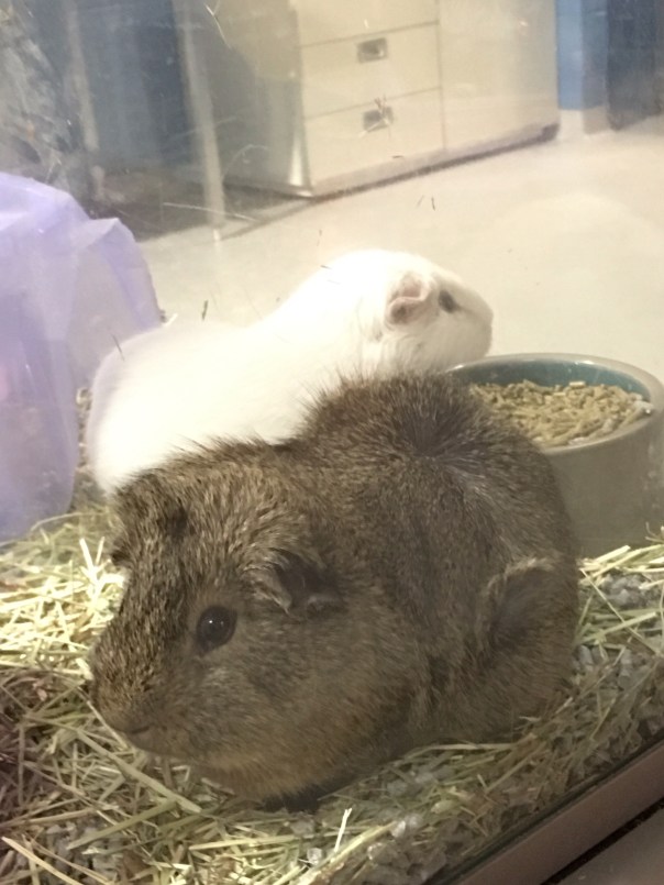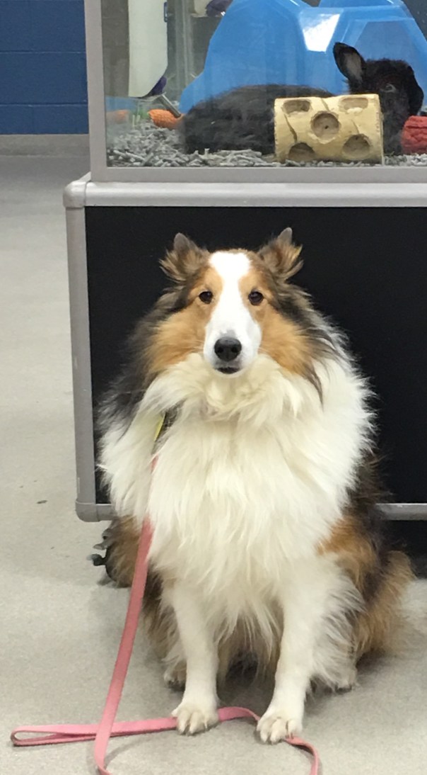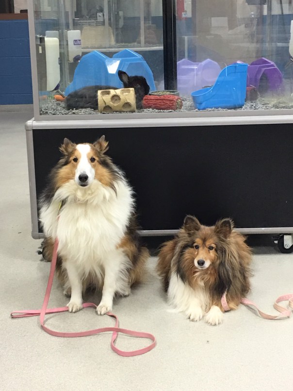 Our class is held in the school’s animal lab. That’s why there is a bunny in the background. There are lots is small animals: rabbits, guinea pigs, chinchillas, lizards, fish, turtles, and an assortment of birds. They provide quite the distraction for the “student dogs” in class. Shelby and Nikki are not impressed by the menagerie.