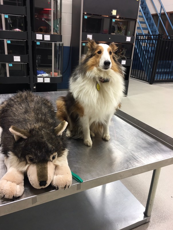 It dawned on me recently that I now have this with Shelby. She is my go to dog whenever I need assistance on a job, or a reliable partner. Shelby has worked numerous public events with me including some with hundreds of people petting her. She has assisted me at county fair demonstrations. She has taught two (so far) therapy dog training classes with me at the vocational school. She has helped me test potential new therapy dog and handler teams for 5 years.