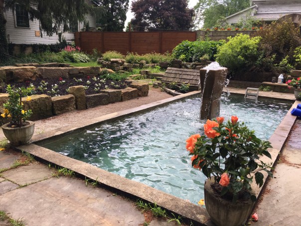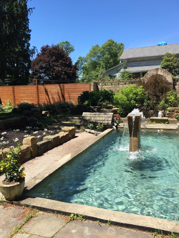 Baxter is sunning himself and enjoying the fountain. He was dropped off here as a pup 10 years ago. What a blessed day it was for us.