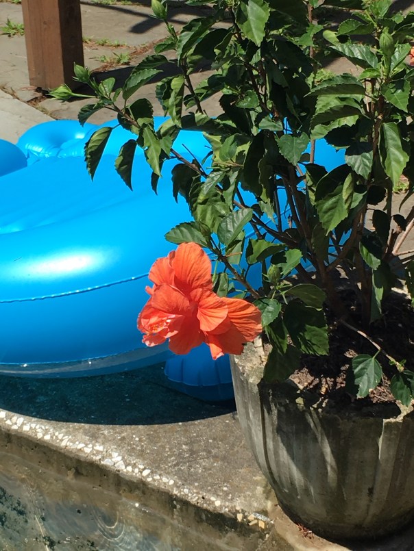 Time for a quick stroll around the patio garden. It was hot over the weekend so that is my inflatable pool chair behind the hibiscus.