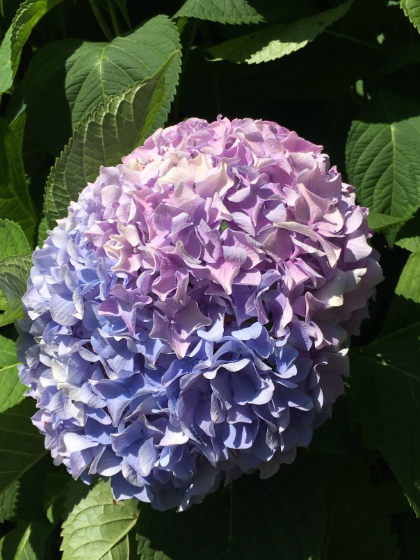 The hydrangeas are becoming quite spectacular. This one is a little confused. It is part bluish purple and part pinkish. This might be good for a yin-yang theme.