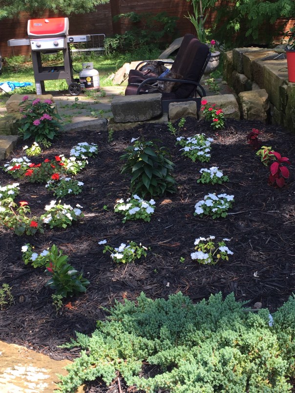 Here is a picture of our newer flower bed with Cassius lounging in the background.