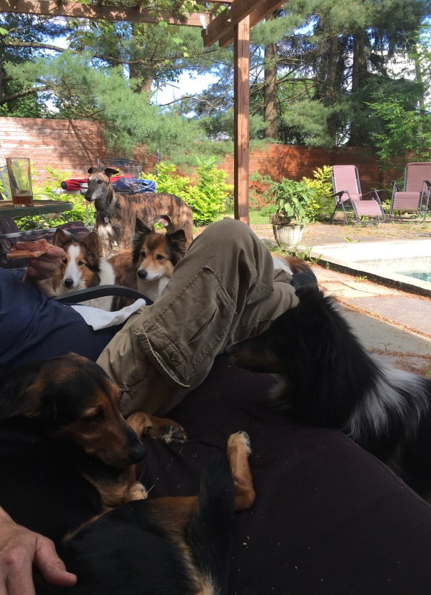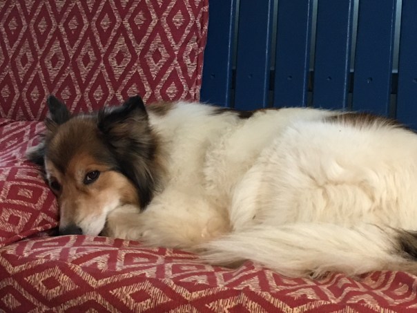 Our skunk did not come running out. We waited for a while. Nothing. Hubby and I went in the house. Mr. Skunk remained in the cage. In fact, he was laying down. Our dogs were still in their crates from when they ate breakfast. I didn’t want to let them outside in case they spooked Mr. Skunk and he ran. I was afraid our dog Baxter would jump the fence and go after him. Baxter did jump the fence one other time to chase an opossum that was in the yard. After waiting some more, we decided that maybe we should have removed the towel that covered the trap. Maybe this made it seem like a den.