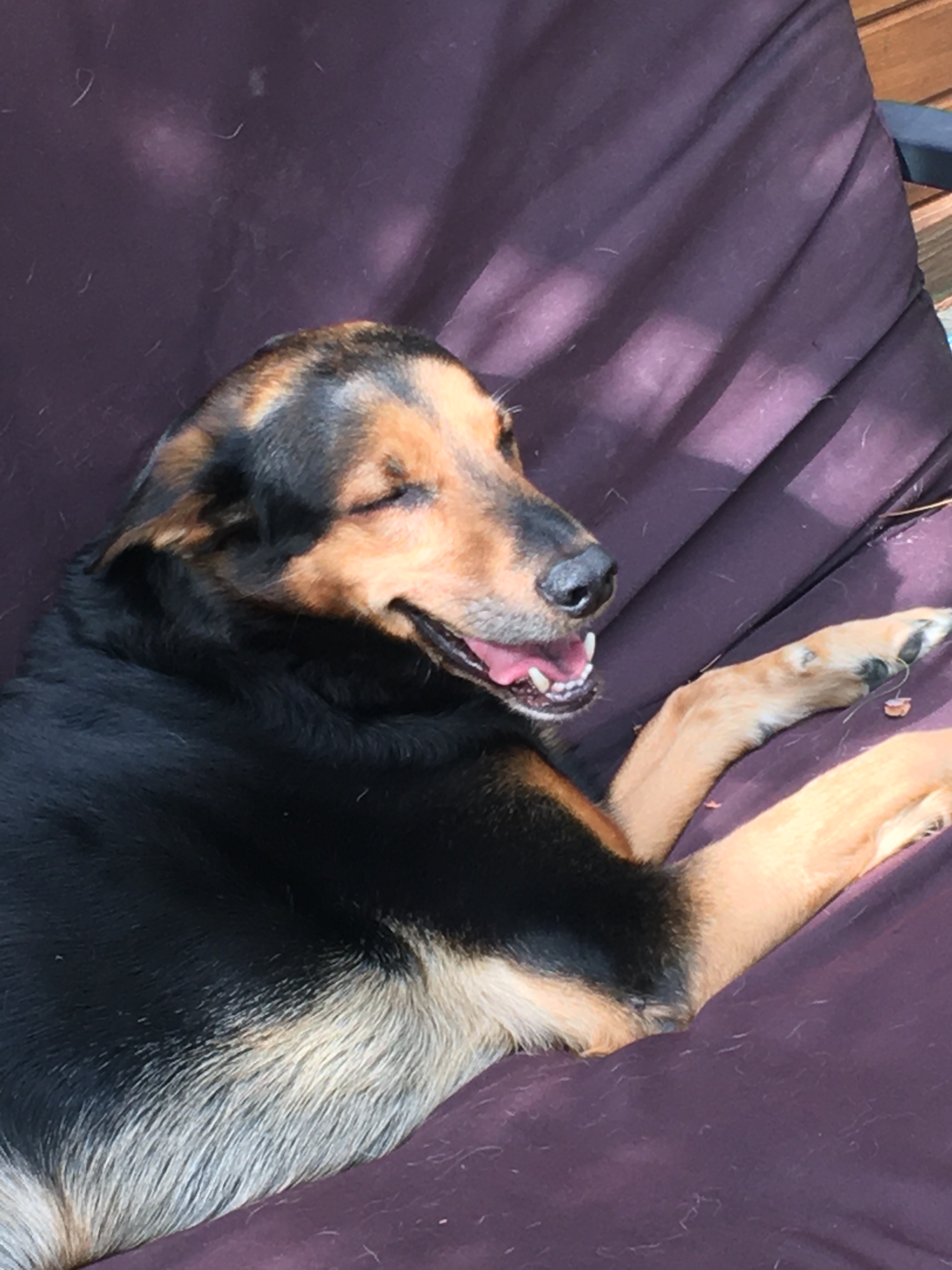 Cassius still enjoys a quick sprint around our fenced pasture and likes to play with his jolly ball. But his favorite thing is sleeping on the couch while maintaining body contact with his mama. That’s me.