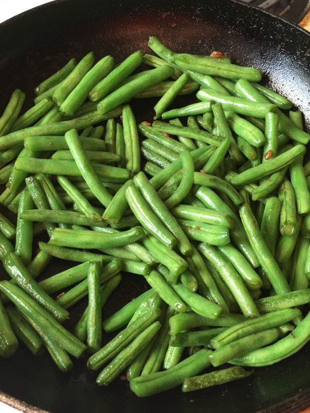 This evening it was green beans pan fried with minced garlic and a dash of sea salt.