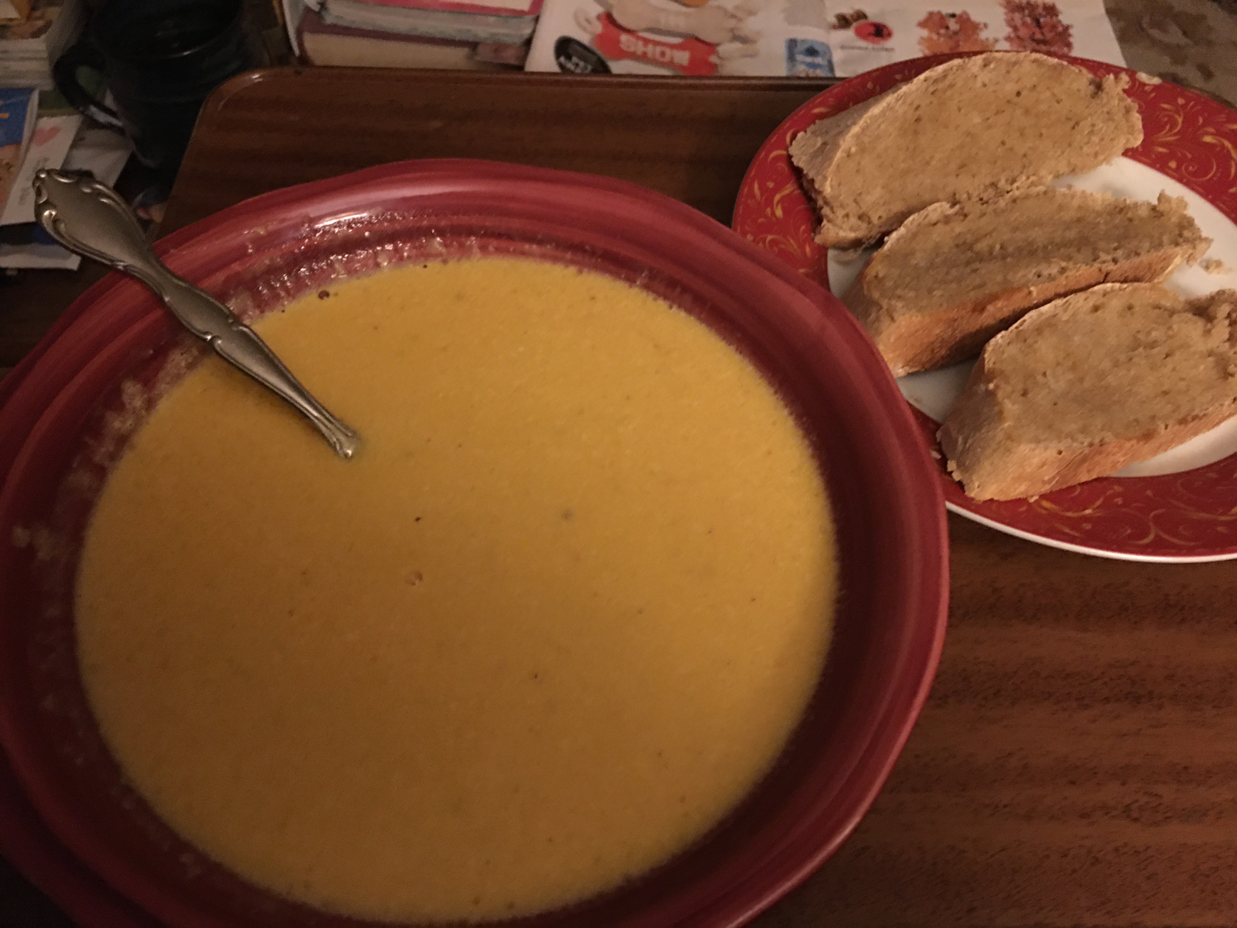 One of the signs of fall at our house is that I make butternut squash bisque. It contains an assortment of vegetables and homemade broth that are complemented by cream and white wine.