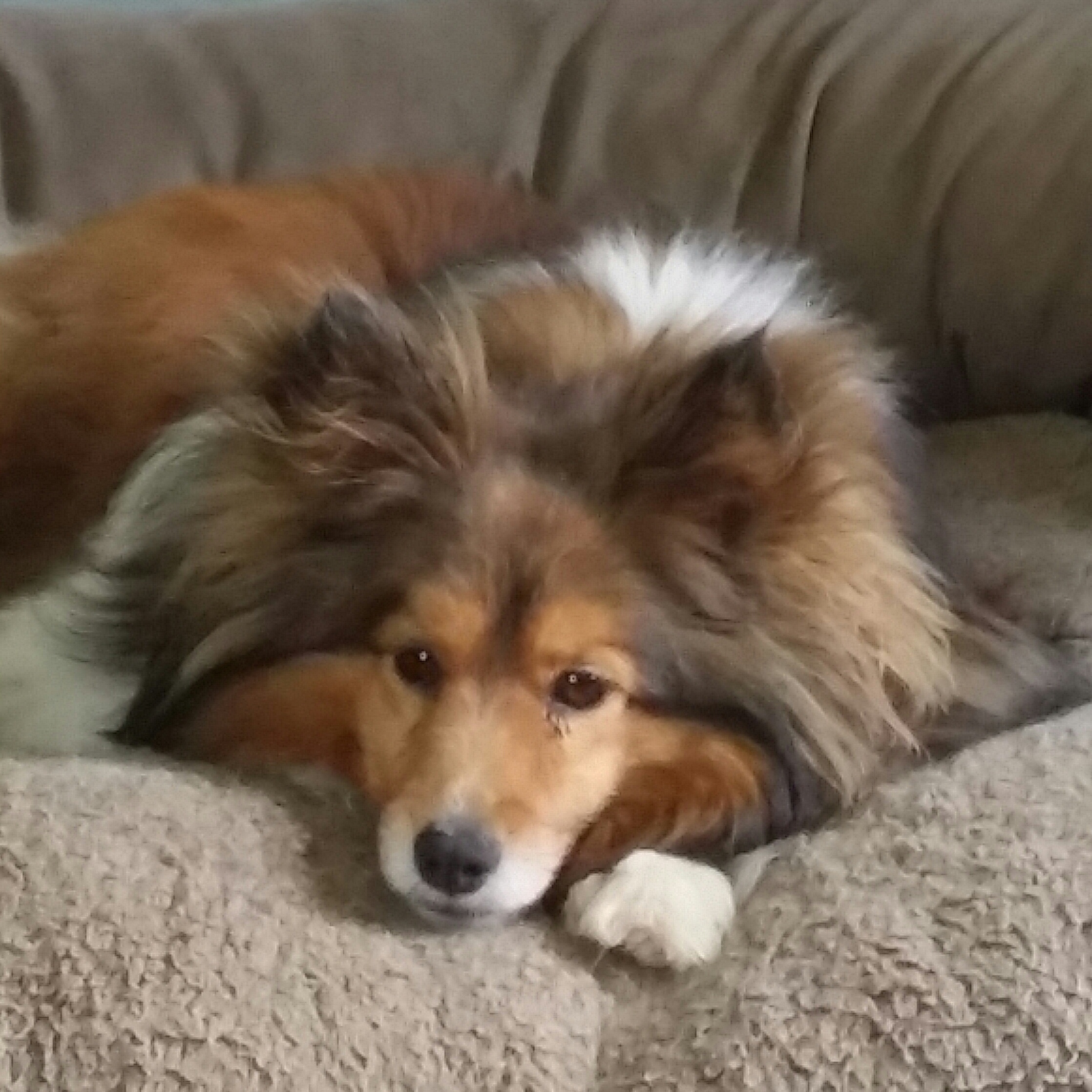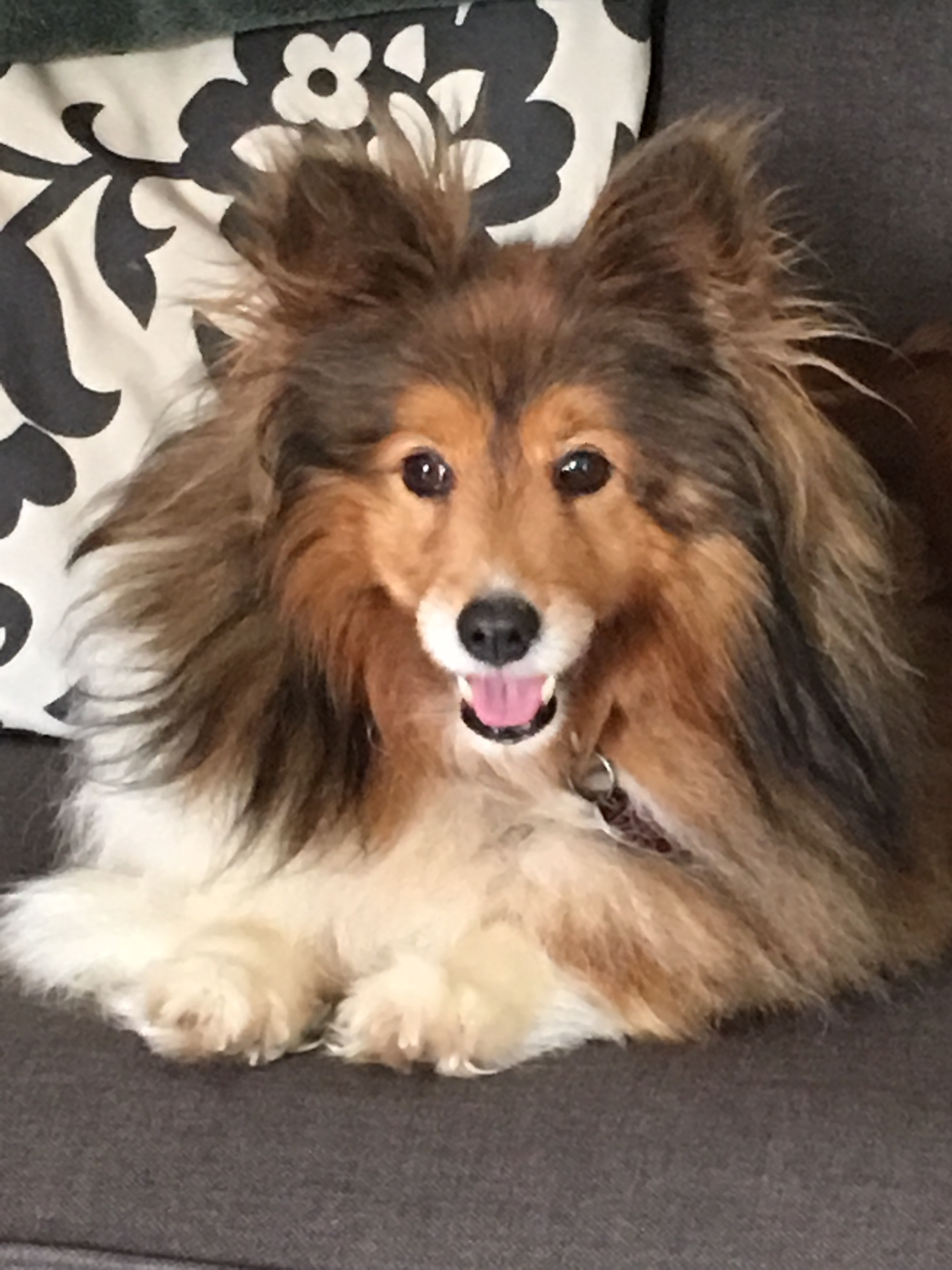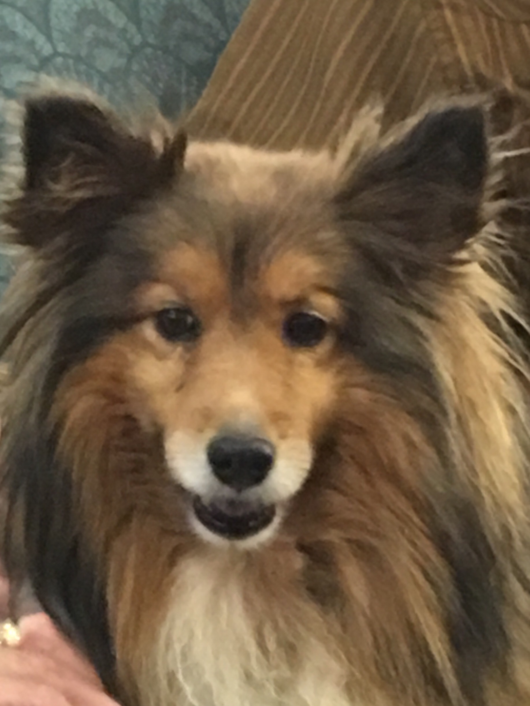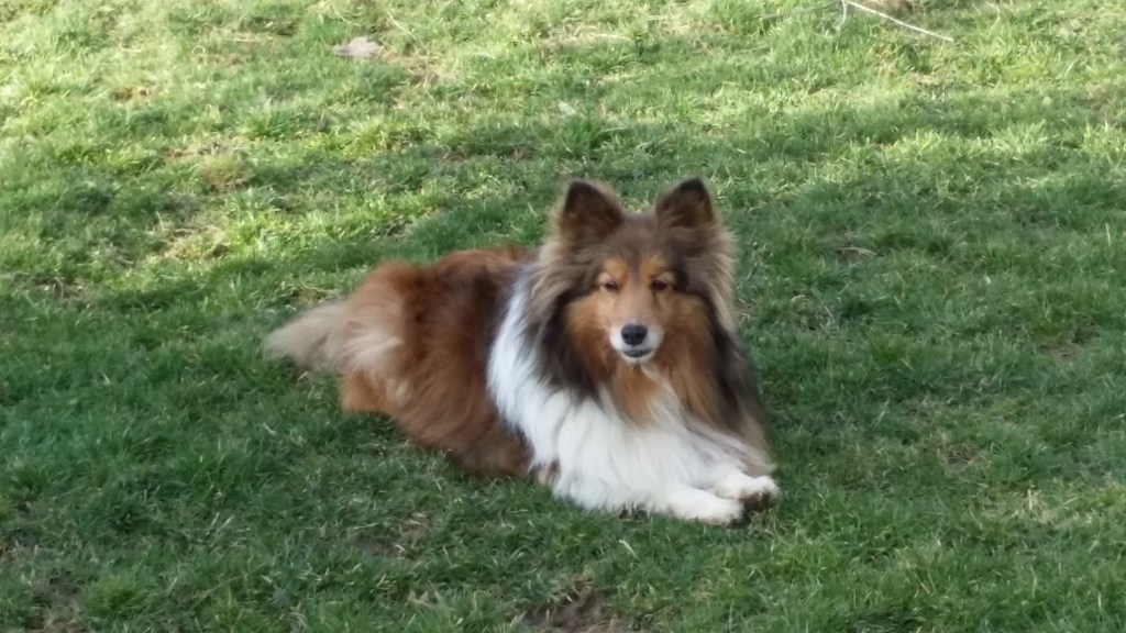 Nikki came to us through Northeast Ohio Shetland Sheepdog Rescue. We were her foster family until we adopted her. She was nearly five years old. Her original owner was in the hospital and no longer able to care for her three dogs. Nikki was the only sheltie of the three so came to our rescue. At the drop off, I was told that Nikki had been abused by some young boys earlier in her life. She was spunky and happy all the time that I knew her, although she did have one slightly deformed back foot. It didn’t slow her down though. She went on walks with us until a couple years ago. Her feisty personality caused me to call her Miss Nikki Pouncer Pants. That and her fluffy butt.
