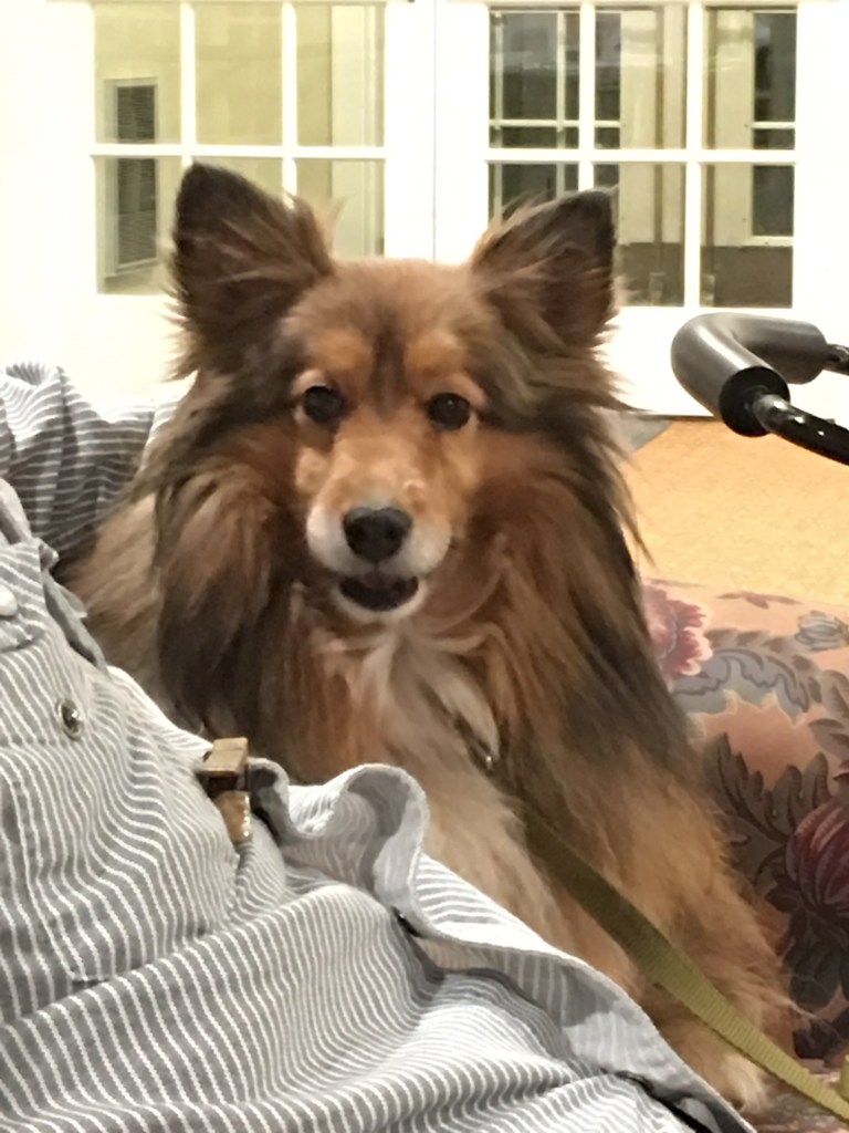Nikki loved to visit her friends at a local nursing home and did so right up until Covid stopped us from going. As soon as we passed through the facility’s door, Nikki made a bee-line for the couch in the lobby and hopped up. Residents soon swarmed around and they all wanted to sit by Nikki and pet her. She was happy to oblige. Here she is visiting with our friend, Bob, who was always up for some conversation and having Nikki by his side. She brought joy to many and was greeted with a smile wherever she went.
