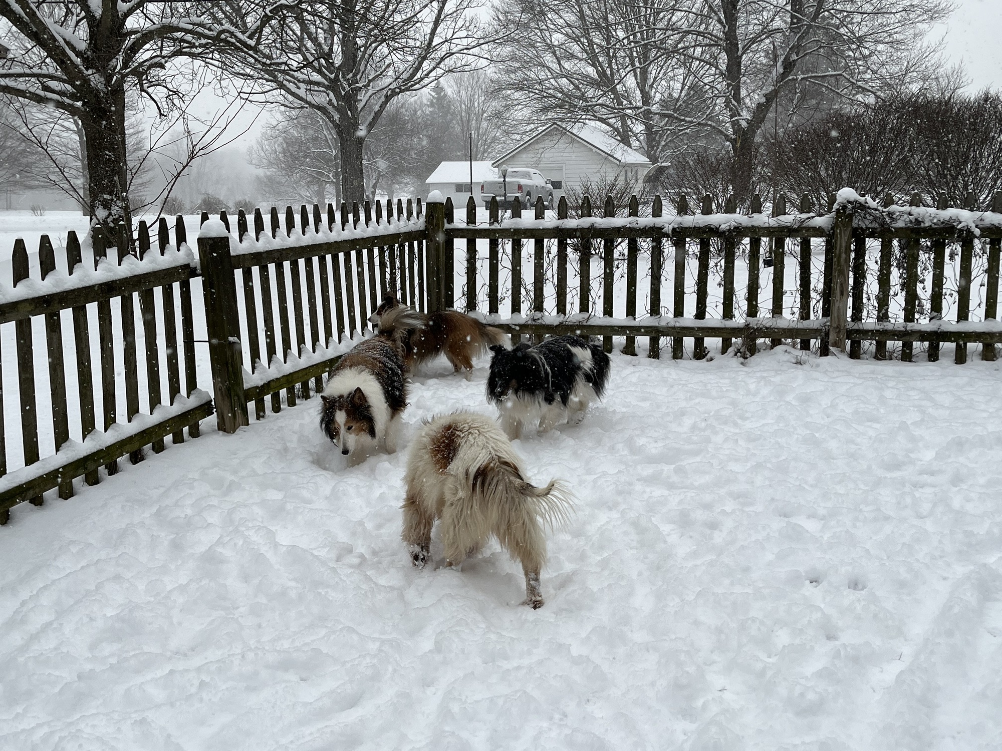 When I walk dogs, Claire is to stay on the right and Zekie’s assigned spot is on the left. This keeps leashes from getting tangled and wound around each other or trees on the trailside. They are pretty good about staying in their spots but occasionally try to switch. I found that rather than a verbal correction, I can just physically guide them back to their place with pressure from the pole. It didn’t seem to phase them at all. They just corrected their positions without even slowing down. Kind of like a herding staff.