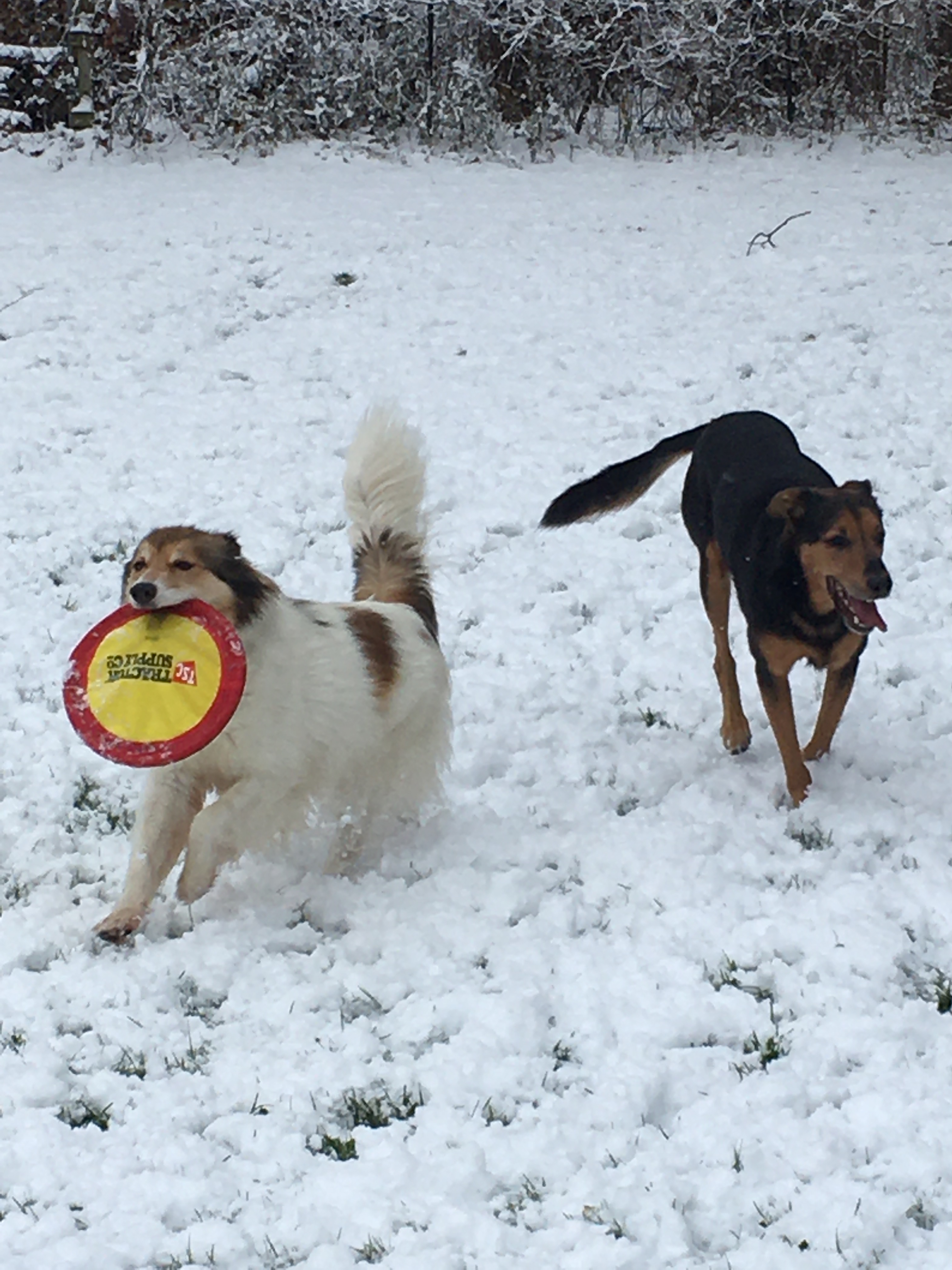 Claire and Baxter playing in the snow