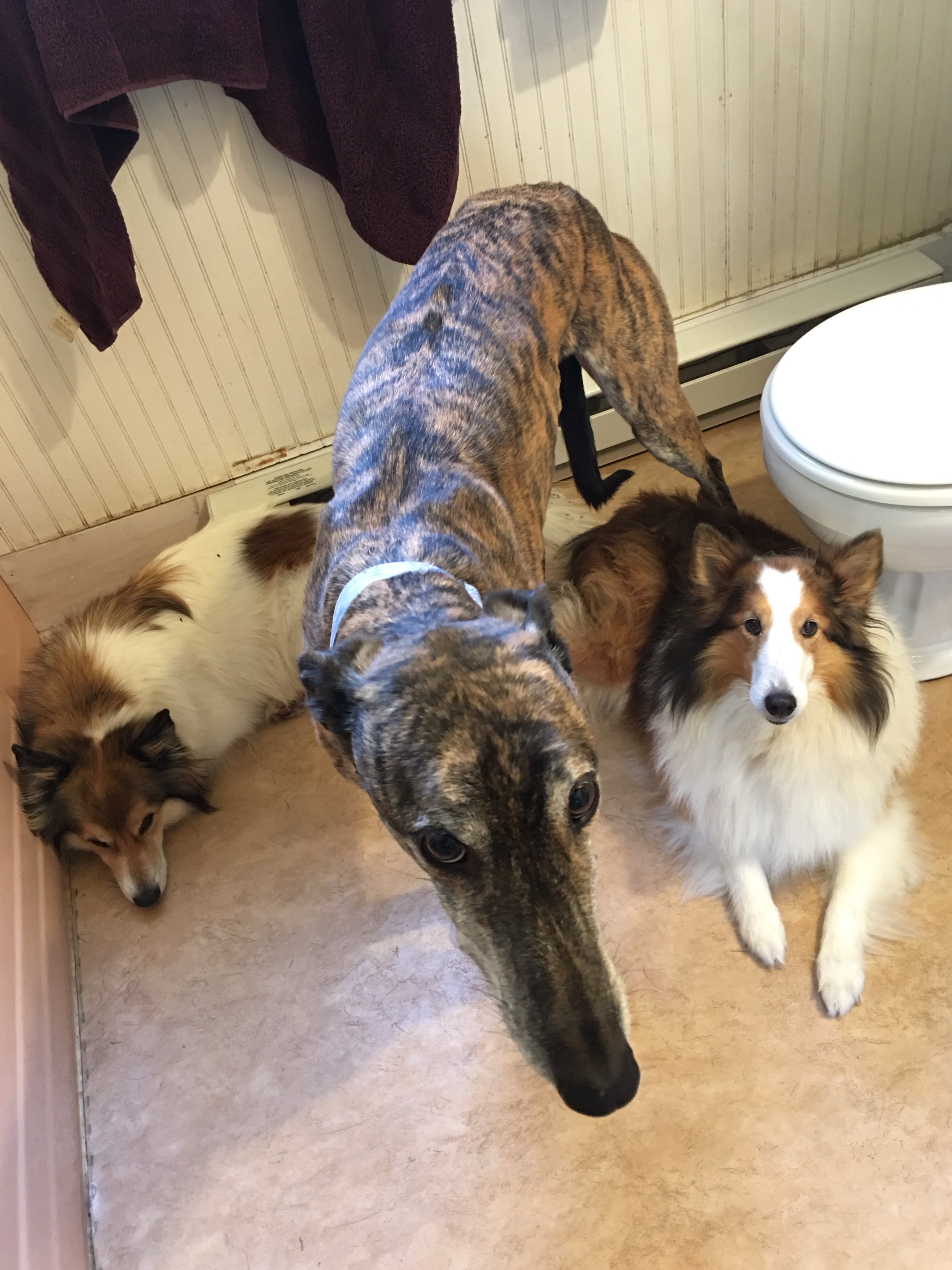 How many dogs does it to shower? This is my view as I get into the shower.