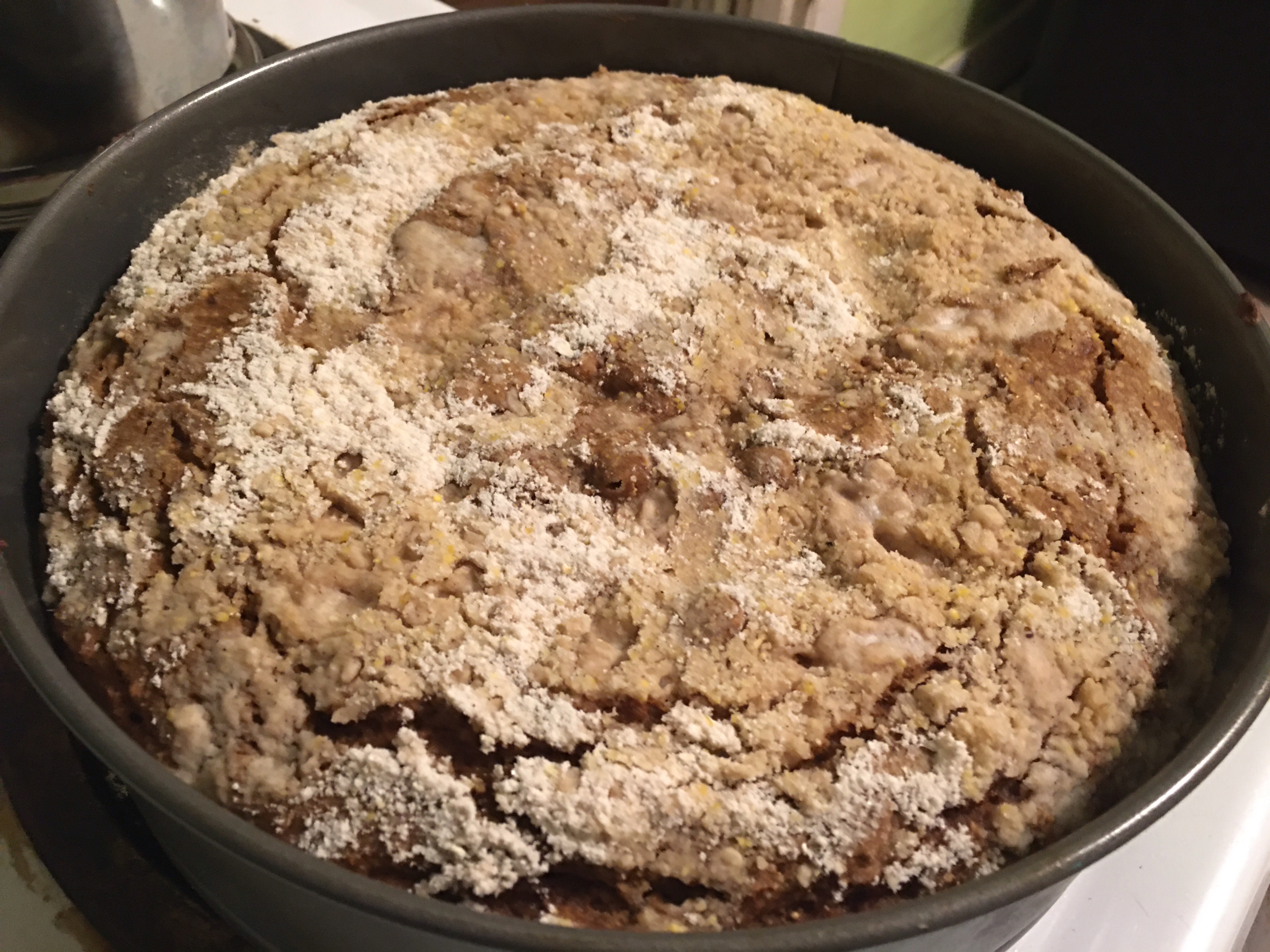 since the oven is already heated up, and we are out of dessert, I should make that pumpkin gingerbread coffee cake I have been thinking about. And so I did.