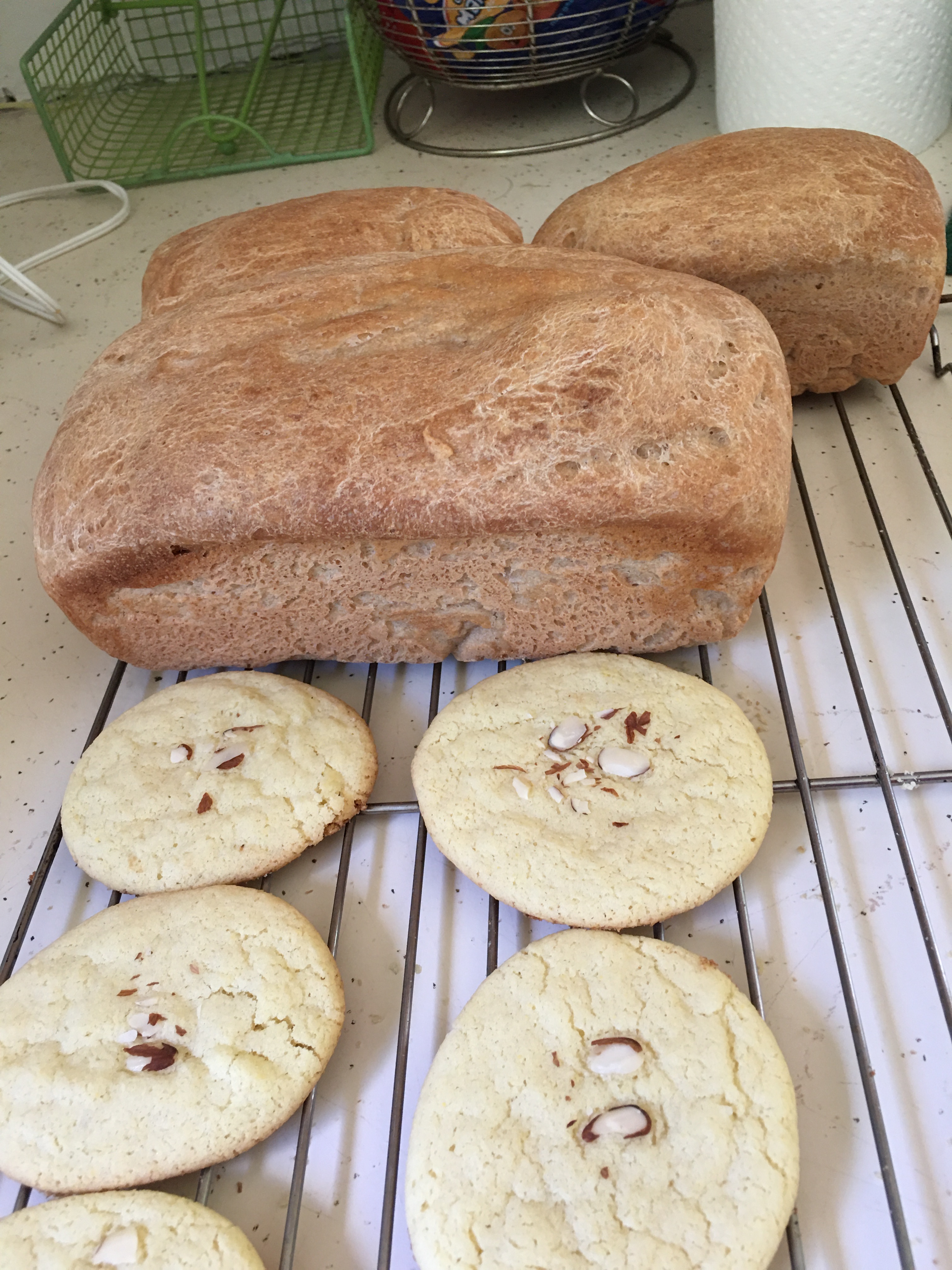 I had some bread dough formed into three loaves and it was sitting on the counter for its final rise before going into the oven. You can already see where this is going, right? Living with multiple dogs (currently 6) and two cats, we have swinging doors on our kitchen that we close with a bungee cord to keep the animals out as needed. I stepped around the corner for a second to look out the window and I turned around and was down to two bread loaves and no one was even chewing!