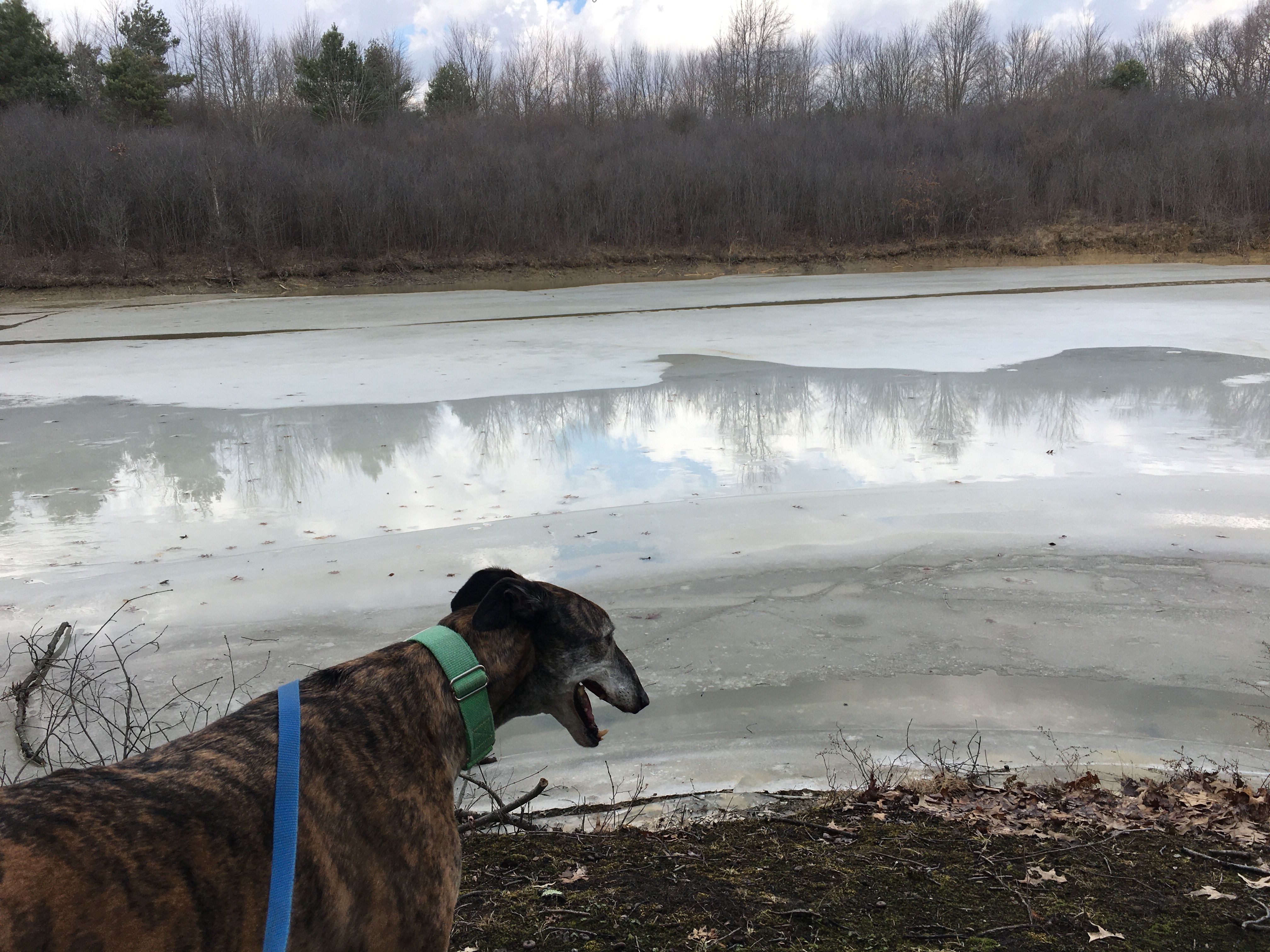 The dogs enjoyed the view too. You can tell by the big smile on Cassius’ face. Of course, Zekie had to walk on the ice near the shore. Baxter tried it and was surprised when he fell through the ice because he weighs more. Don’t worry, he was only about six inches from shore, and they were all leashed. I have no doubt that Zekie would be the dog to run out onto the ice and fall through. That boy loves water in all forms. In the summer, he drags me to every puddle so he can walk through them and drags me to every stream so he can jump in. Now he walks on every patch of ice and snow that he can find even though the roads and trails are clear.
