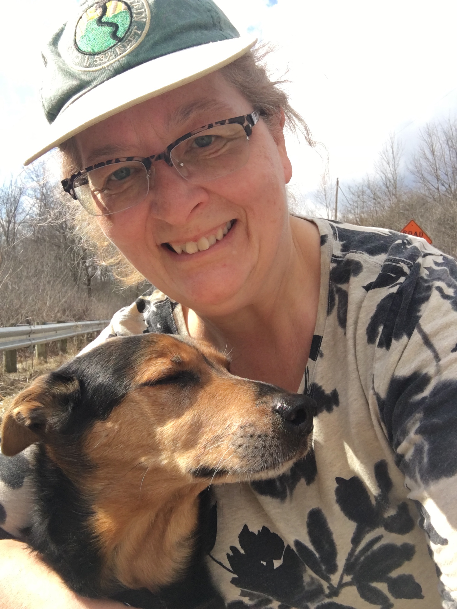 In the spring and fall when it is warm, we hike at 10:30 am before it gets too hot. Not only is it too hot for me by afternoon, but the pavement gets too hot for doggy feet on days we hike on pavement. Dogless walkers probably wonder what we are doing when we bend over to feel the asphalt with our hands for a few seconds. I’m sure other dog walkers know. At least I hope so.