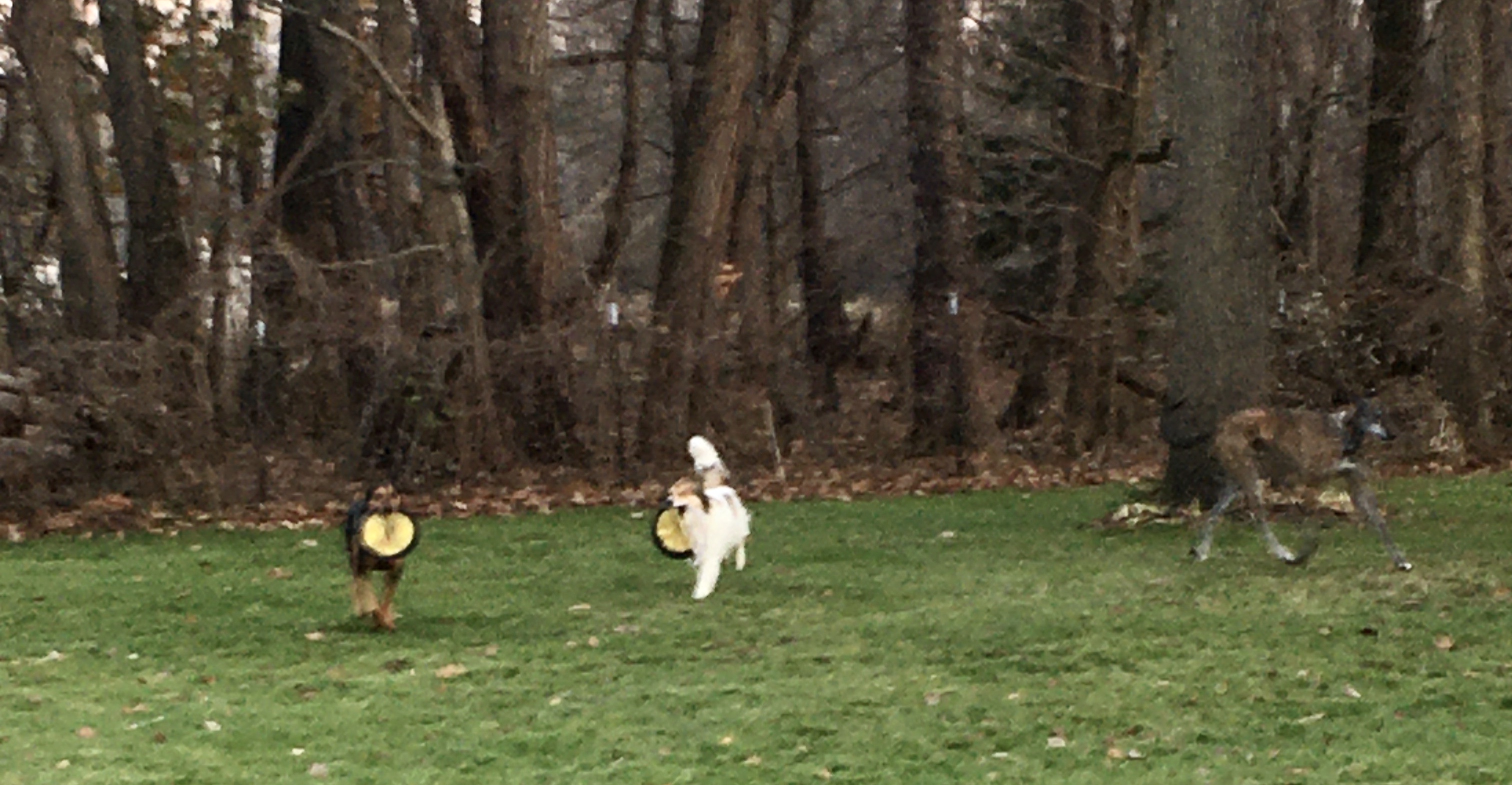 Claire never catches the frisbee. Not because she can’t, but she doesn’t seem to want to. She enjoys running after it and barking with the other dogs. She even reaches the frisbee first, many a time. She just doesn’t like to pick it up. She still gets in plenty of exercise, and we have other dogs to bring the frisbee back, so we don’t mind.
