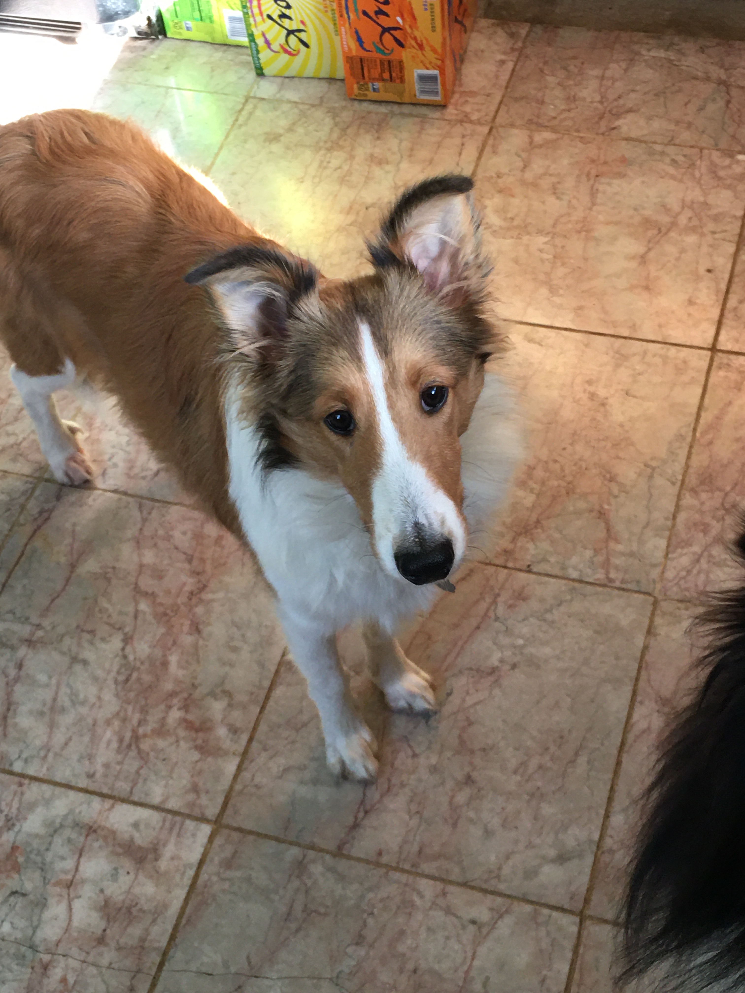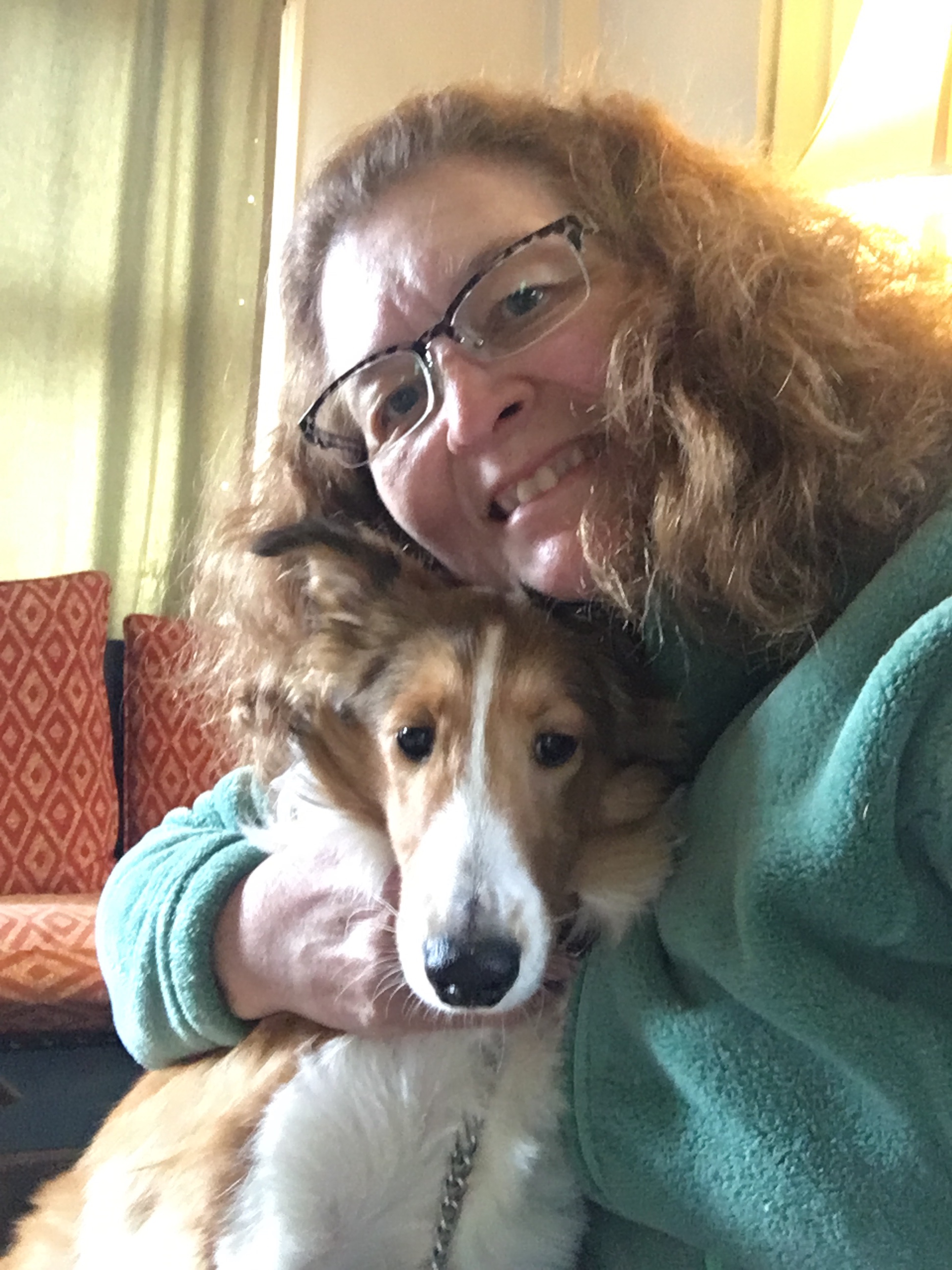 On Christmas day my husband picked PeeWee up, put a bow on him, and said, “Here you go, Merry Christmas. This present is for you and Claire.” Best gift ever! Claire is one of our other shelties and the reason the gift was for her and me, is because she loves PeeWee. She seems to think he is her puppy. She plays with him throughout the day, every day. He can take bones from her mouth, and she rarely complains. When PeeWee is not looking, Claire just takes them back. They can do this for quite a while. Also, when we are out for walks or hiking, Claire keeps an eye on where PeeWee is and gazes adoringly at him every few seconds.