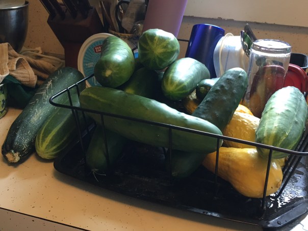 We get this many cucumbers, zucchini, and yellow squash every three days.